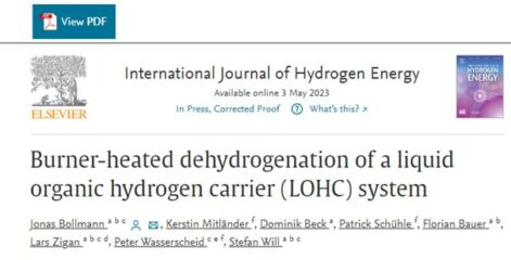Für eine wasserstoffbasierte Wirtschaft ist eine sichere und effiziente Speicherung unerlässlich, wobei flüssige organische Wasserstoffträger (LOHCs) eine reversible Speicherung ermöglichen. In diesem Beitrag wird die erfolgreiche Nutzung des Abgasstroms eines Porenbrenners zur Bereitstellung der Wärme für die endotherme Dehydrierung der wasserstoffreichen LOHCs beschrieben. Dabei liegt ein Fokus auf der Dynamik der Dehydrier-Einheit bei einer maximalen Wasserstoffleistung von 3,9 kW.