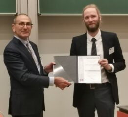 Dr. Florian Bauer wurde für seine Dissertation „Investigation of Soot Formation by Optical Diagnostics: From Precursor Measurement to 3D Particle Sizing“ der MegaWATT-Forschungspreis 2023 des Wissenschaftlichen Arbeitskreises Technische Thermodynamik verliehen. Der Preis wird vergeben für die beste Dissertation oder Habilitation in Technischer Thermodynamik im deutschsprachigen Raum. Die Preisverleihung erfolgte durch den WATT-Vorsitzenden, Prof. B. Atakan, auf dem Thermodynamik-Kolloquium 2023 in Hannover.
